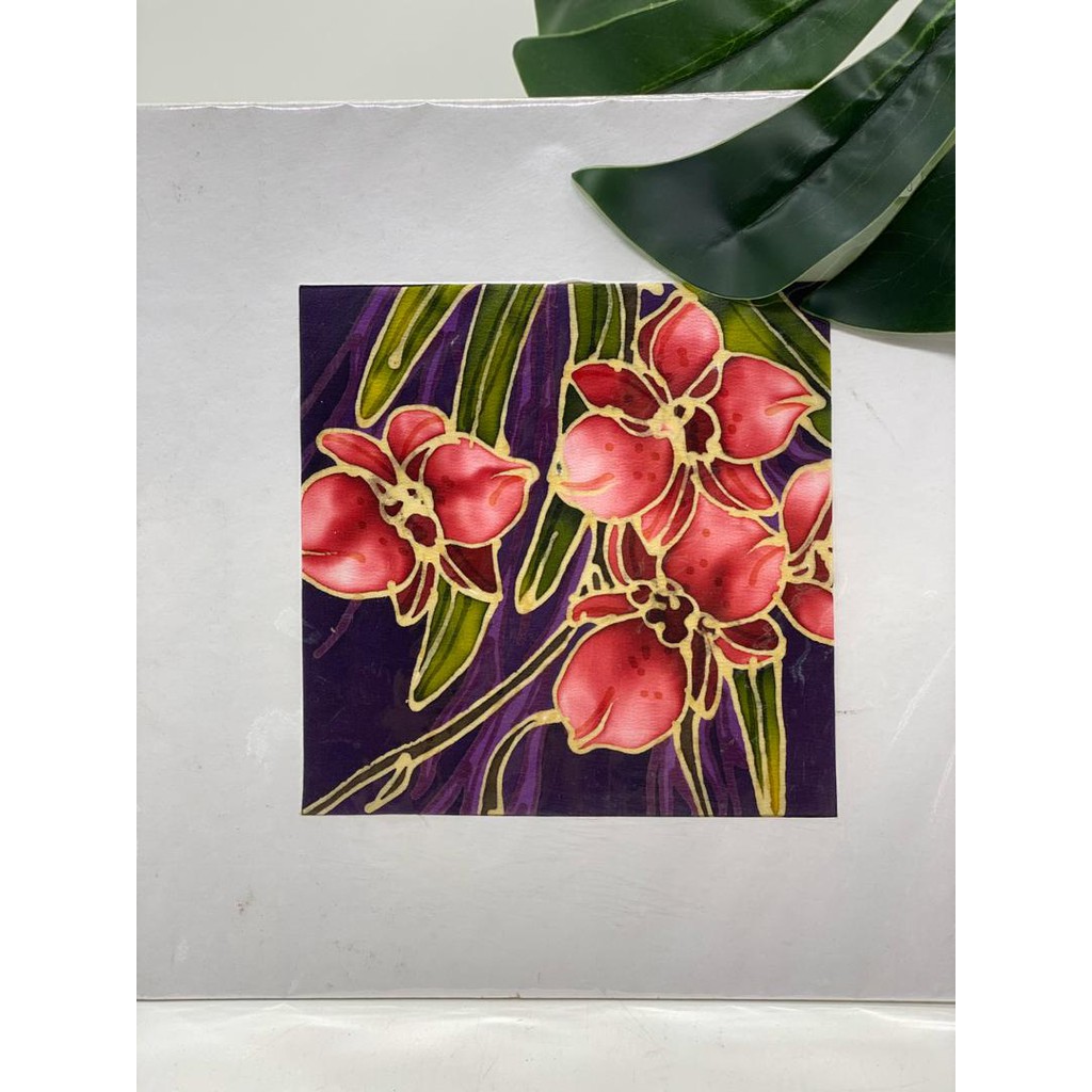 Lukisan ini merupakan reka bentuk corak batik yang bermotifkan bunga orkid. Batik cotton lukis tangan asli kelantan.